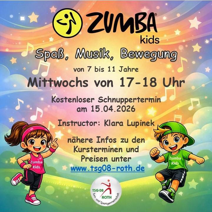 Du suchst nach einer Möglichkeit, dein Kind spielerisch in Bewegung zu bringen? Dann ist Zumba® Kids genau das Richtige. Mit moderner Musik, einfachen Choreografien und viel Abwechslung werden Koordination, Rhythmusgefühl und Selbstvertrauen gefördert.
